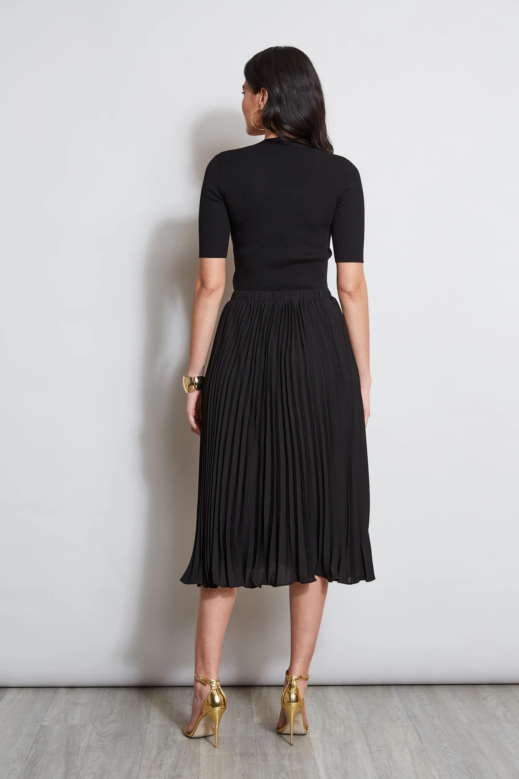 - T-Tahari Pleated Midi Skirt with an elastic waistband