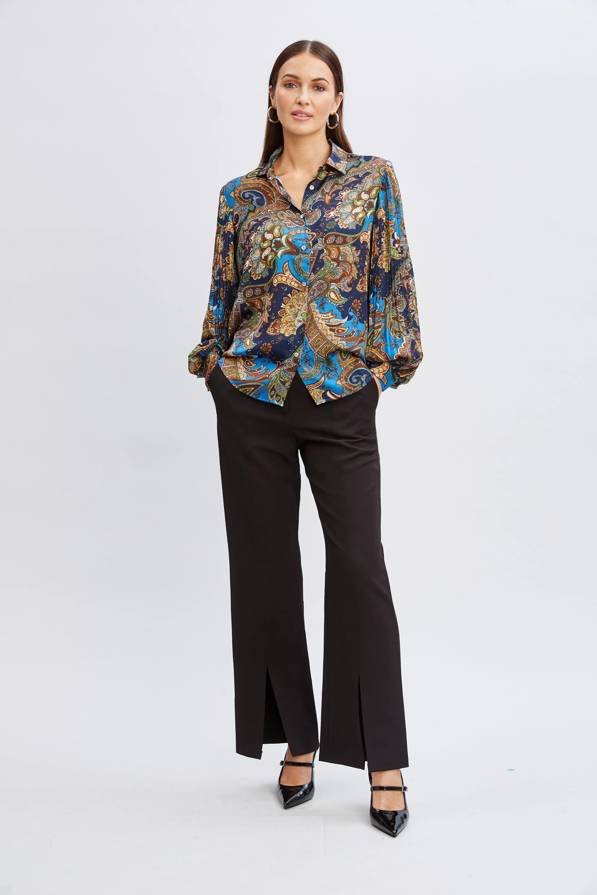 Express yourself in our Paisley Print Shirt. In luxe polyester georgette, the button down silhouette, sophisticated colors, and relaxed fit make it an easy addition to your wardrobe.
