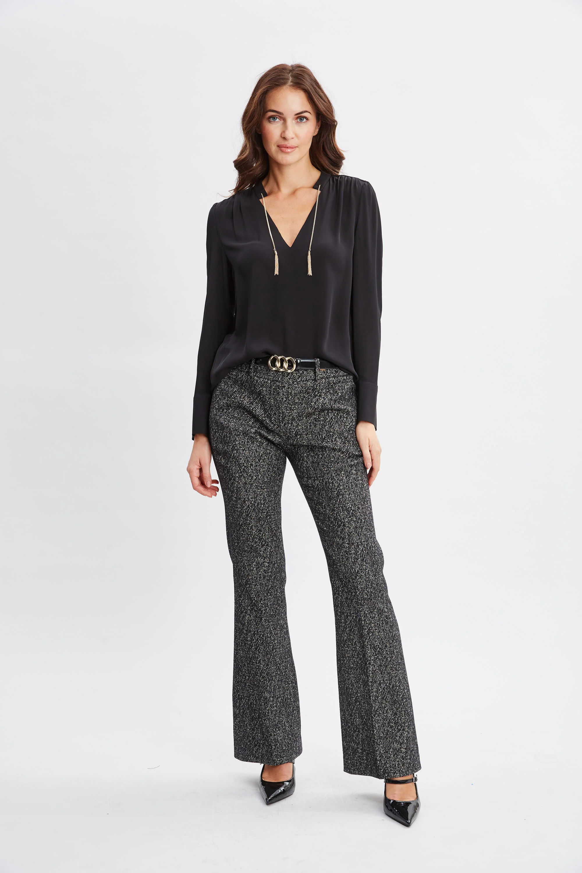 Monili Chain lends our Silk Georgette shirt a modern chic attitude. The flattering V-neck is detailed with chain trim and a delicate fringed chain. A modern staple that you'll reach for again and again.