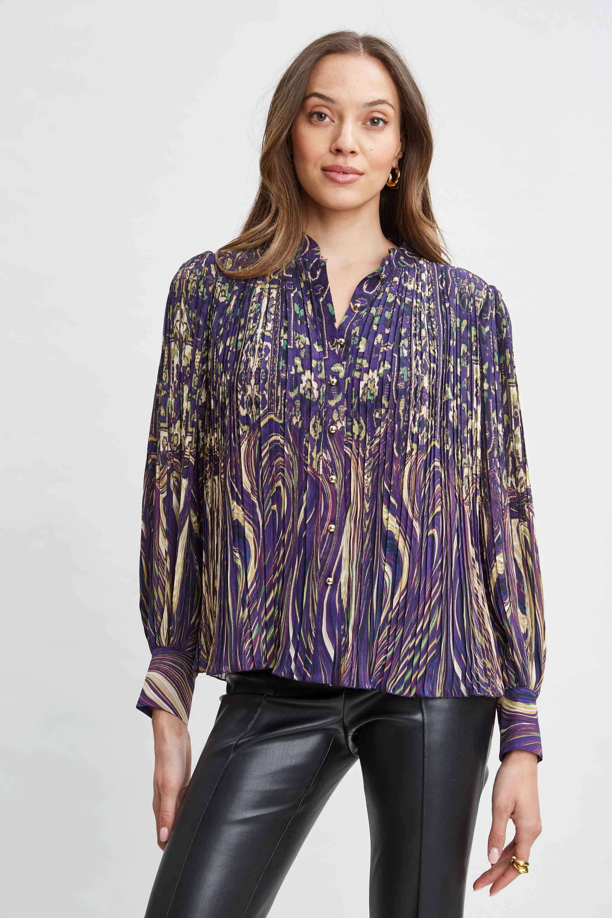 - Printed Chiffon Shirt with Pintuck down the front.